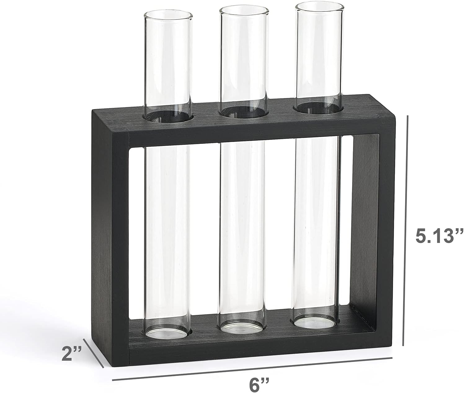 Size: Wooden Frame: 6″L×2″W×5.13″H; Test Tube: Diameter is 1″, Height is 6.75″. Modernate sized plant holder nice for small spaces like window ledges or bedside. No plants or other decorative objects included in this item!