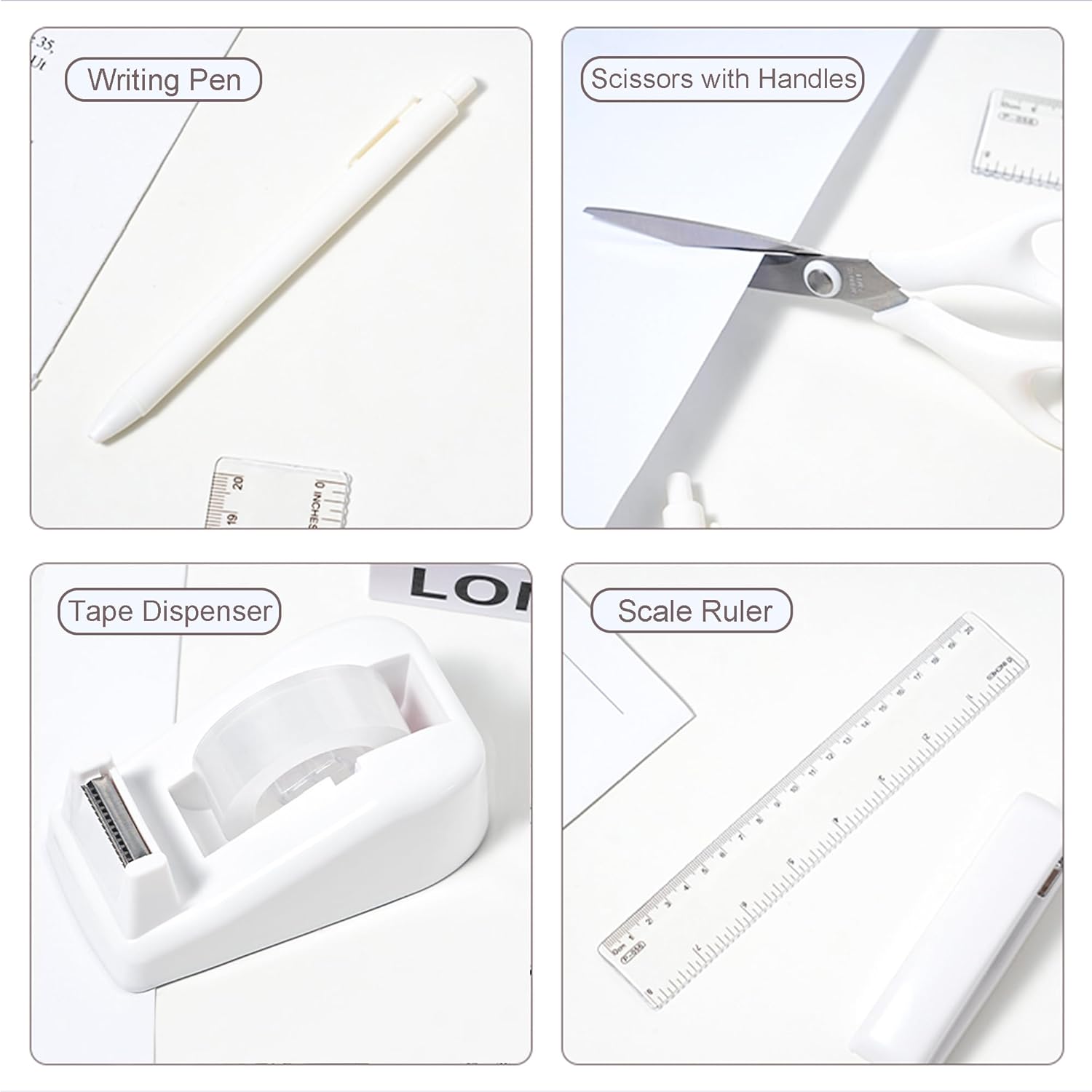8 reviews for Desk Accessories with Pen Holder, Office Supplies Desk Organizers and Accessories, Tape Dispenser, Stapler, Staple Remover, Staples, Clips Set, Ruler, Scissor, Pen, Tape (White)