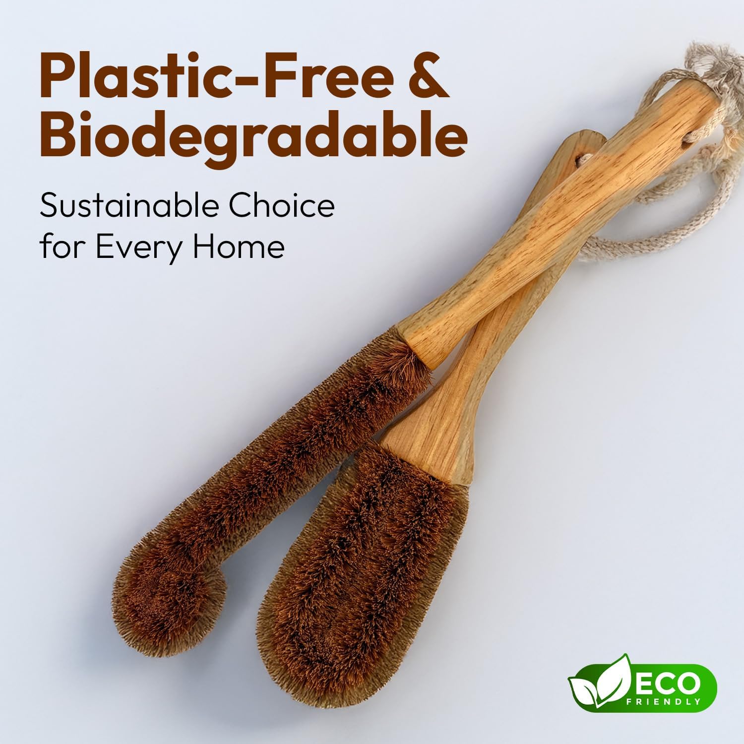 This twin pack of coconut fiber brushes feels sturdy and practical. The bristles are thick and firm, giving plenty of scrubbing power without being rough or abrasive. They work well for bottles, jars, and glassware, cutting through buildup easily while staying gentle on surfaces. The texture strikes a good balance between coarse and controlled.The wooden handles are smooth, comfortable to hold, and shaped well for narrow containers. They rinse clean and dry quickly, which keeps them fresh between uses. Everything about them feels simple, functional, and made to last, especially if you want a sustainable option that performs.
