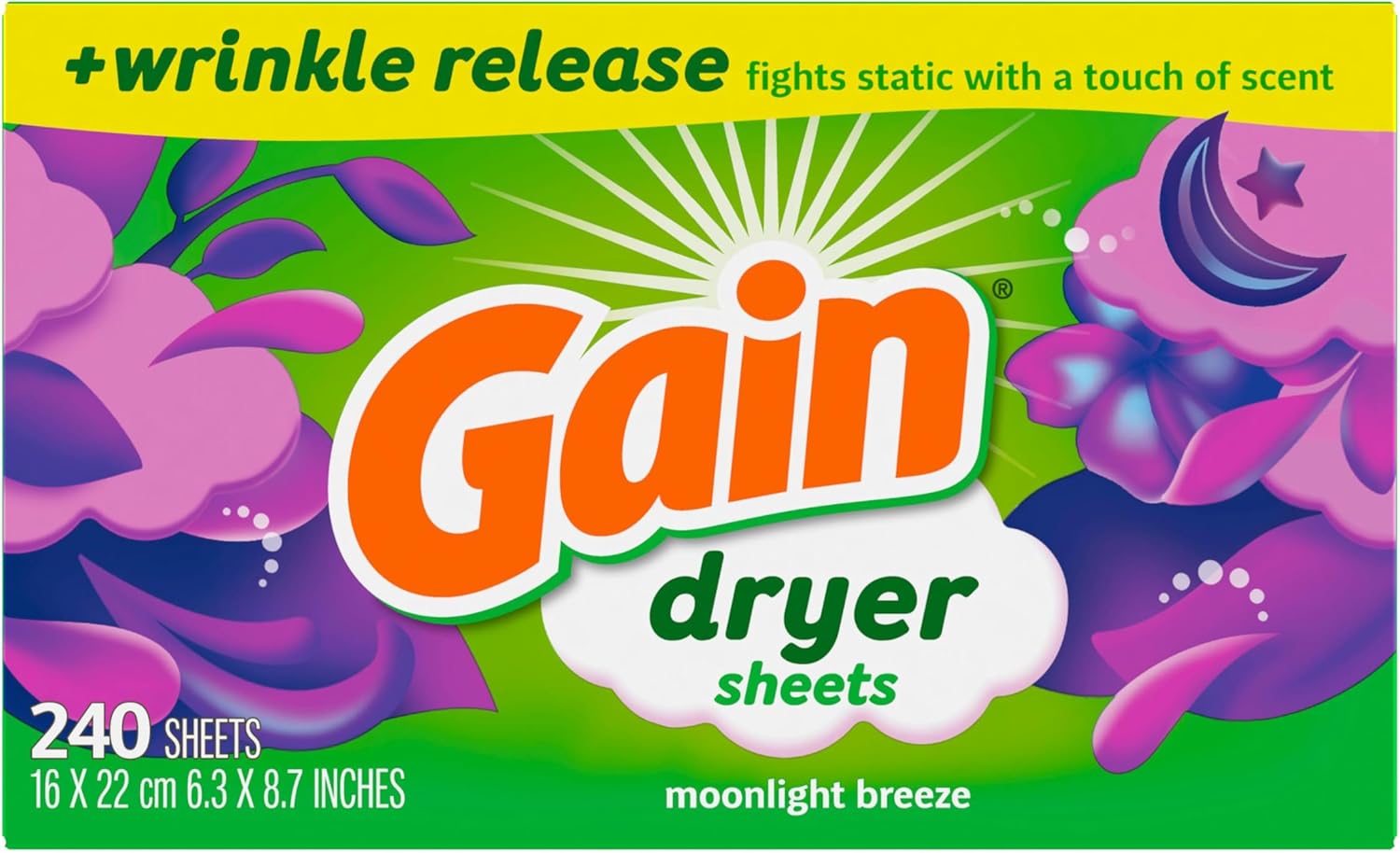 13 reviews for Gain dryer sheets Plus Wrinkle Release, Moonlight Breeze Scent, 240 Count, Fights static with a touch of scent, laundry sheets