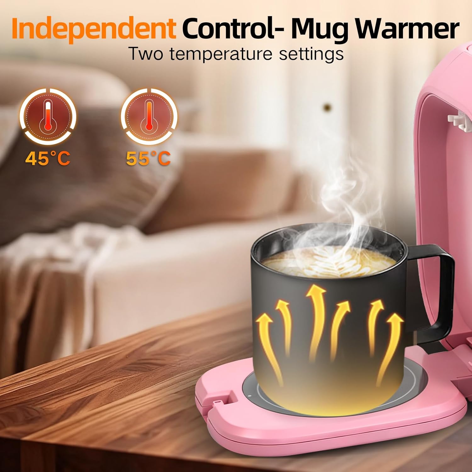 The built-in coffee mug warmer is a thoughtful bonus, keeping drinks warm while you work or relax. The compact design makes it portable and easy to place on a desk or bedside table. It’s a well-designed, efficient, and convenient heater that combines warmth and functionality in one sleek package.