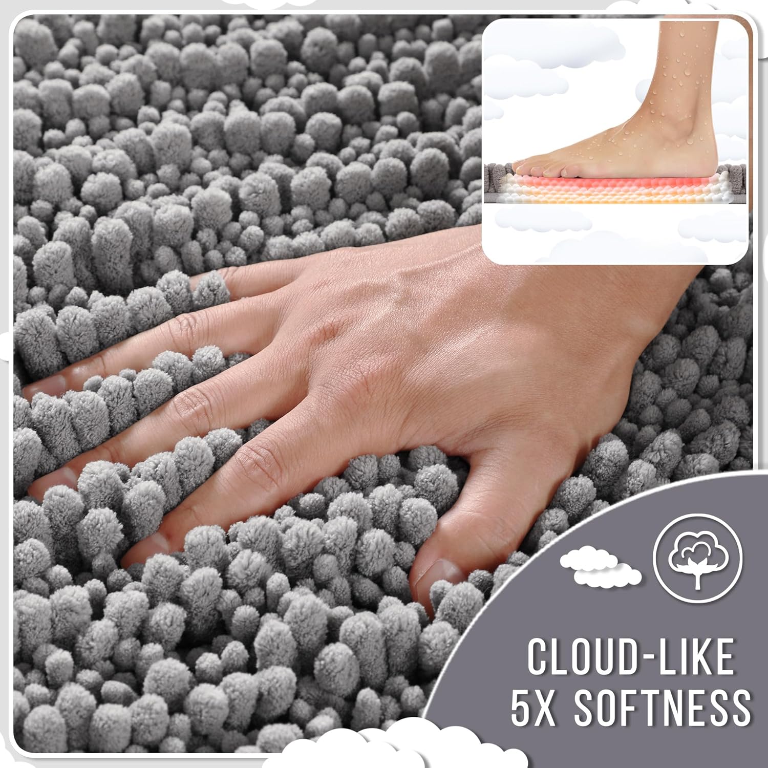 Ultimate Cloud-Like Soft Comfort: Indulge in walking on clouds with our extra thick chenille bathroom mat set! The ultra plush high pile density cradles your feet, banishing the chill of cold tiles. Transform your bathroom into a warm oasis and turn every step into a moment of pure luxury