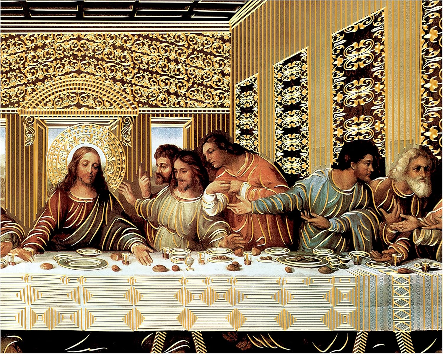 The Last Supper Jesus Christ Da Vinci (7.87 X 9.84) Gold Foil – Religious Wall Art Laminated Print Unframed Poster Home Decoration Arte Diseño Piezas Maestras